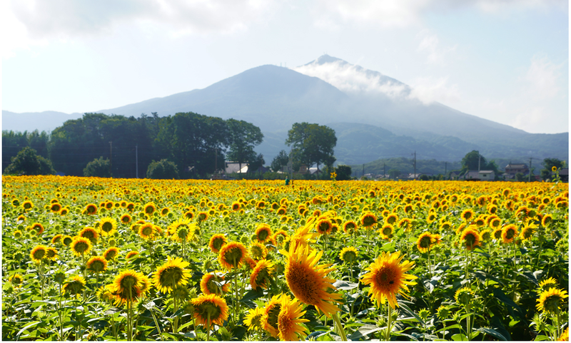 約4haの畑に八重ひまわり約100万本が咲き誇る茨城県最大級のひまわり畑です。